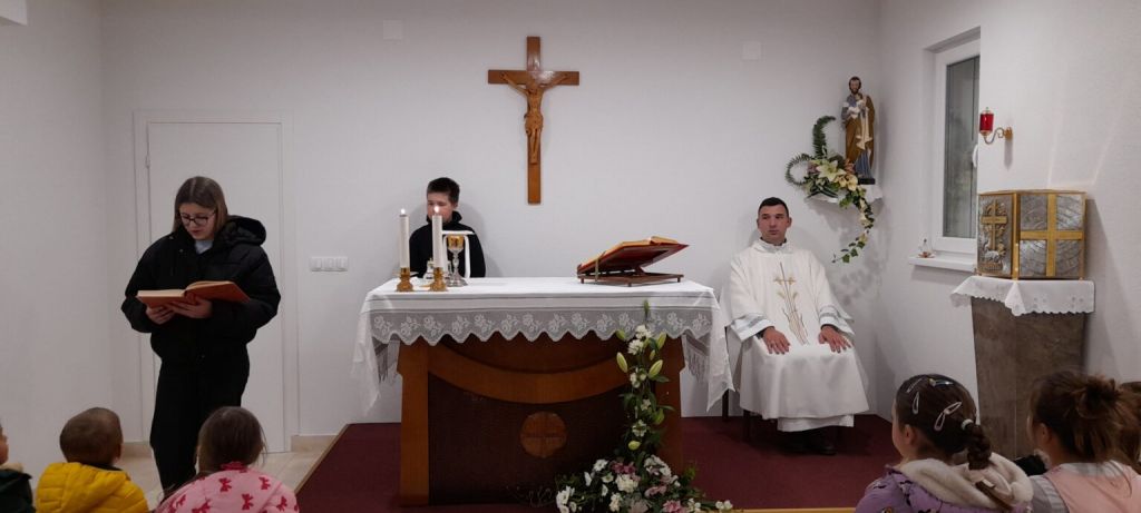 Sveto misno slavlje u našoj kapeli svetoga Josipa, predvodio je don Grgur Alviž. U prigodnoj propovijedi naglasio je kako unatoč tome što nemamo zapisanih riječi svetoga Josipa u Svetom Pismu,: „njegov primjer nam je svima poticaj i poziv da i mi poput svetoga Josipa budemo Božji suradnici. A za tu suradnju nam nije potrebno puno riječi, nego puno vjere i povjerenja u Boga„. Nadalje je potaknuo nazočne roditelje kako je sveti Josip zaštitnik očeva, pa je i tu uzor kako otac treba skrbiti o obitelji, čuvati je i biti onaj koji je vodi u ljubavi zajedno sa svojom suprugom. Njihov suživot unutar kršćanske obitelji mora crpsti život iz primjera Svete Obitelji. Zajednička molitva, čitanje Svetog Pisma, zajednički odlazak na Svetu Misu je zdravi i čvrsti temelj koji je utemeljen u Kristu – zaglavnom kamenu svake obitelji. Osvrnuo se na misna čitanja te istaknuo rečenicu iz Evanđelja: „Kad se Josip probudi oda sna, učini kako mu naredi anđeo Gospodnji“. Pozvao je nazočne da se i mi probudimo i učinimo kako nam Gospodin govori preko naše savjesti, Riječi koju slušamo, preko ljudi koje susrećemo te zaključio riječima: „Govori Gospodine, sluga tvoj sluša, ti imaš riječi života vječnoga.“